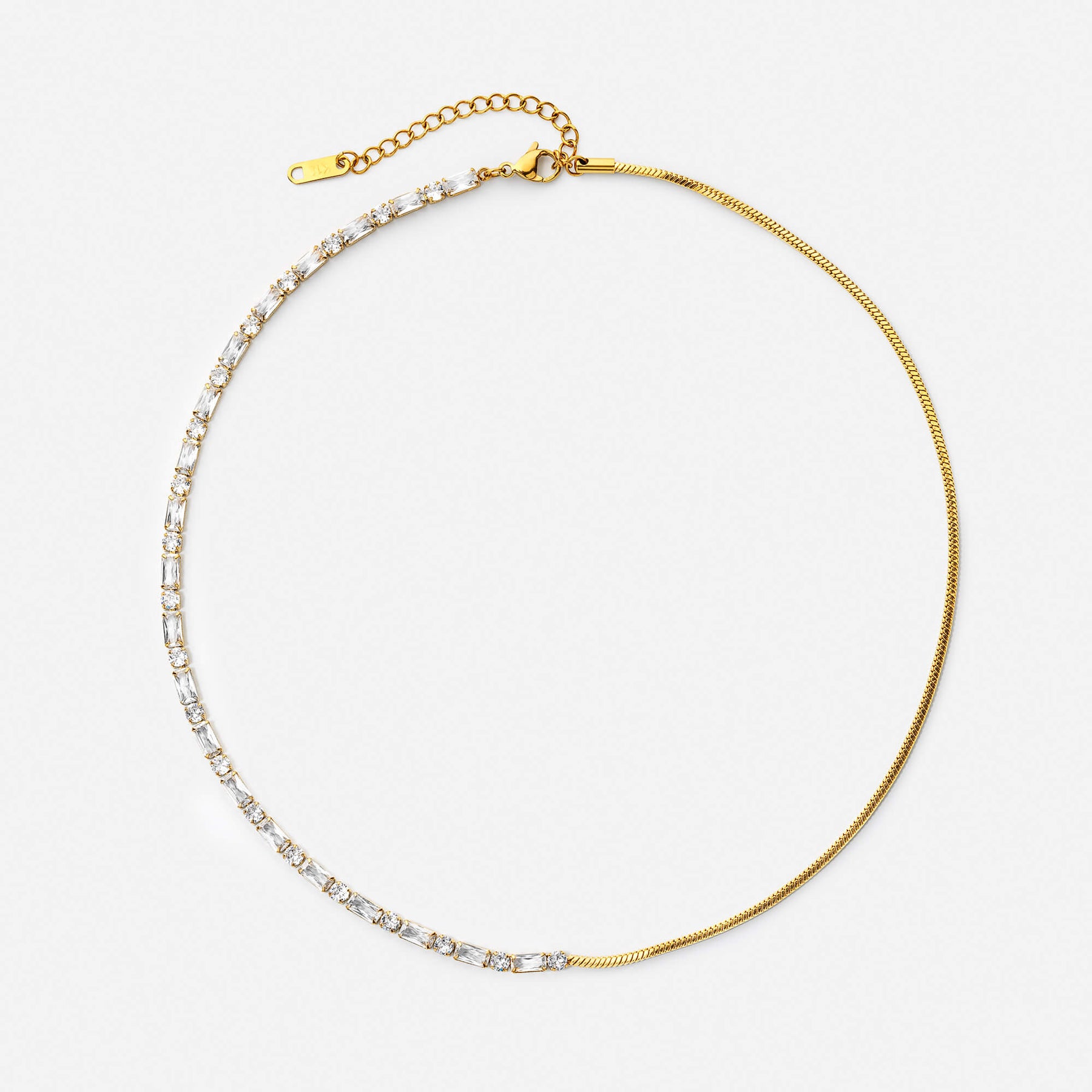 Minimalistisch, elegant en moeiteloos chic — de Ice Ketting is het perfecte sieraad voor elke dag. De subtiele schittering van de fijne steentjes vangt het licht bij elke beweging en geeft je look een frisse, luxe uitstraling.