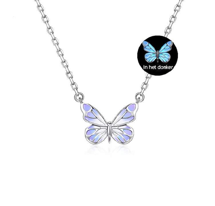 Deze betoverende ketting is voorzien van een verfijnd vlinderontwerp in een dromerige paarse tint. Ontworpen om zacht op te lichten in het donker, vangt dit sieraad de perfecte balans tussen elegantie en magie. Of je haar nu draagt bij daglicht of ’s avonds, het lichtgevende effect voegt een vleugje mysterie en verwondering toe aan je look. Ideaal voor zowel speciale gelegenheden als dagelijks gebruik – een speelse sprankeling die gegarandeerd opvalt.